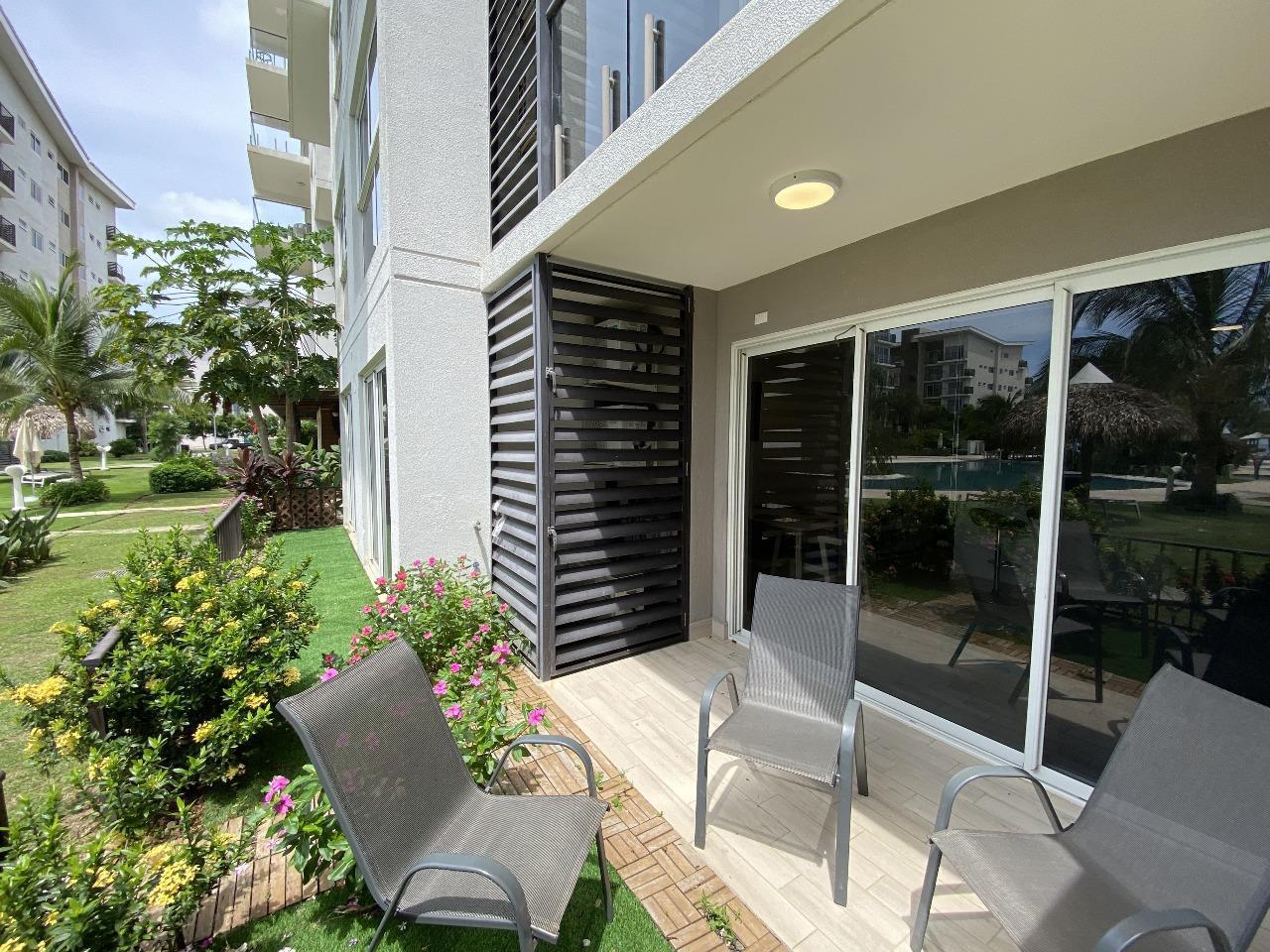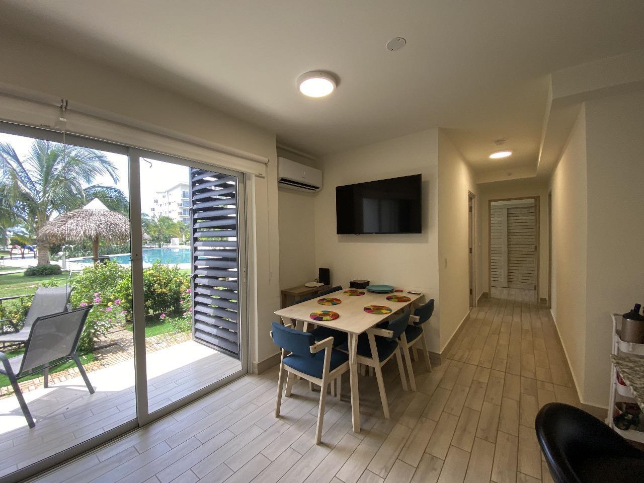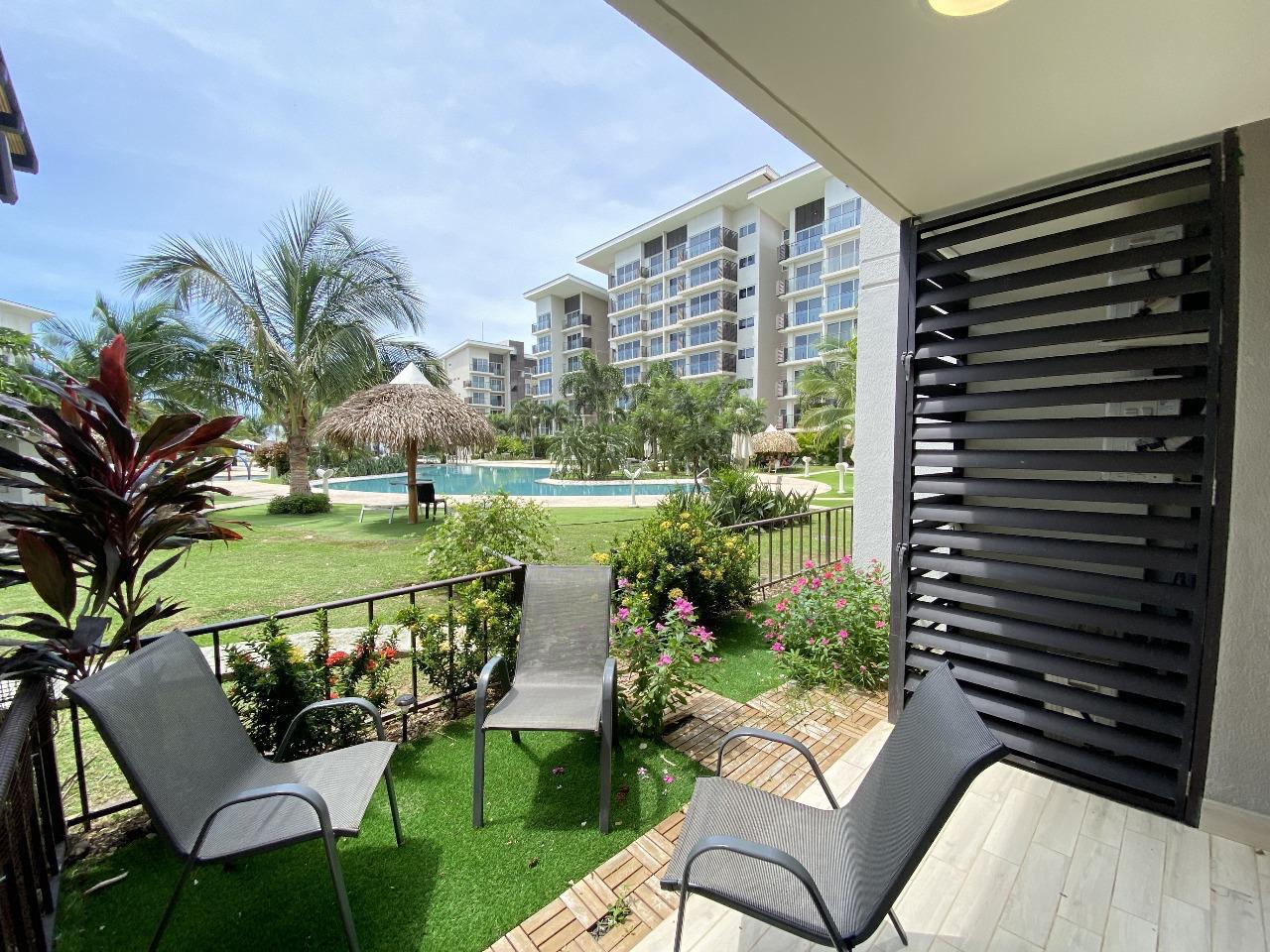 Ground floor apartment located in Playa Caracol, a beach community in Chame known for its natural surroundings, peaceful atmosphere, and direct access to the ocean. The property offers comfortable and functional living spaces including a living and dining area with an integrated kitchen, as well as access to outdoor areas that enhance the beach lifestyle. It is offered turnkey, fully furnished and ready for immediate use or rental. Playa Caracol is a residential development that features social areas, a swimming pool, and direct beach access, making it ideal for those seeking a relaxed coastal lifestyle.